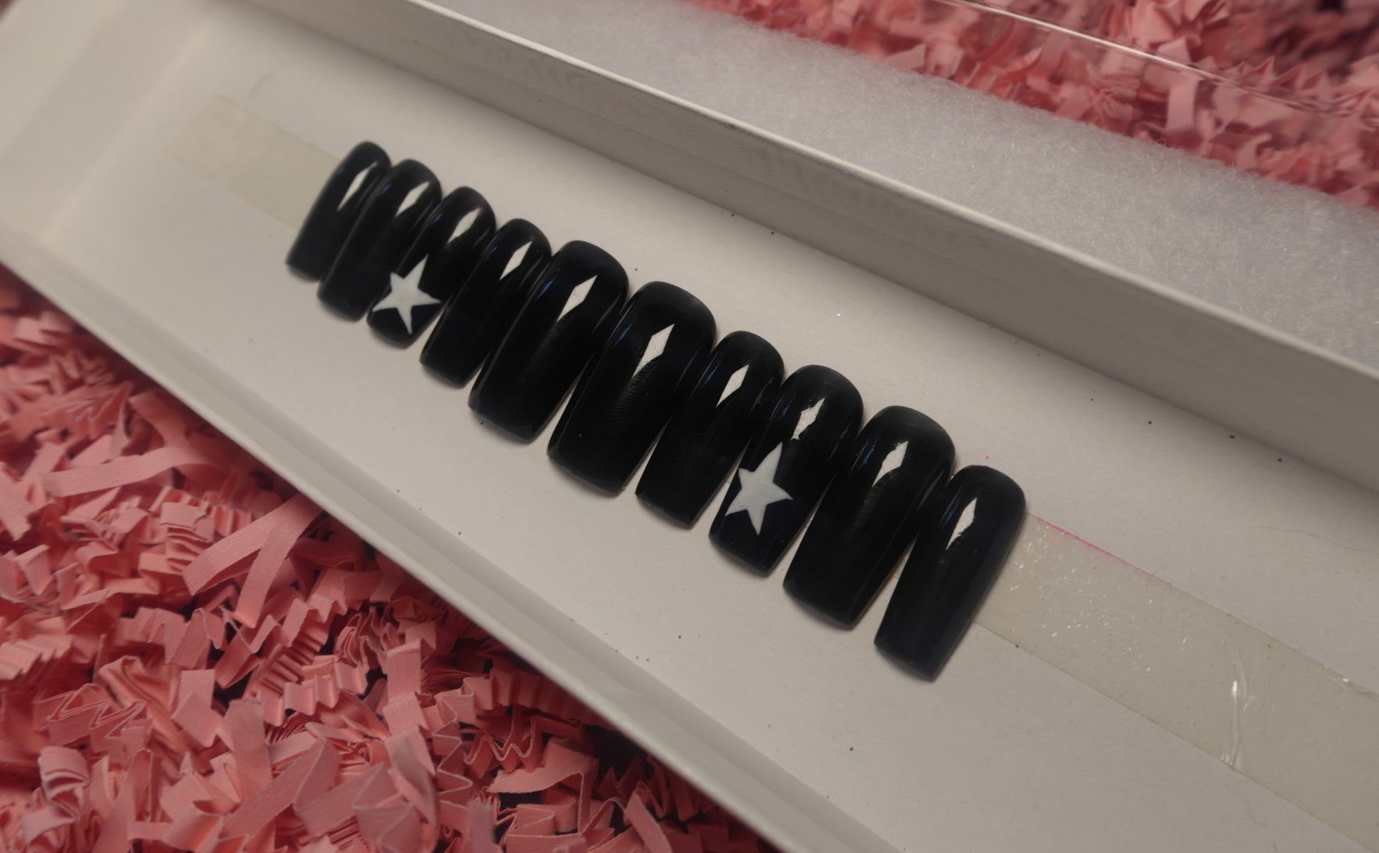 Simple, bold, and effortlessly chic — Midnight Star is the ultimate statement in minimalist glam. Featuring a glossy jet-black finish with subtle star accents, this press-on set is perfect for anyone who loves a clean, edgy look with just the right touch of sparkle.
